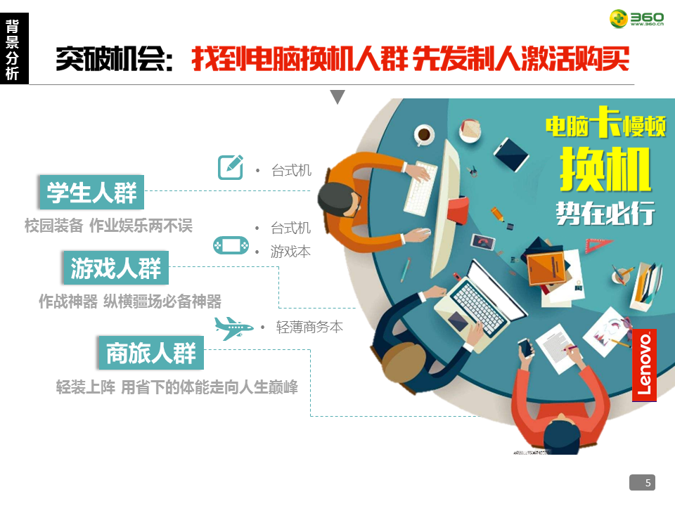 在电脑开启率越来越低,用户争夺战日益激烈的时代,如何突破机会,找到电脑换机人群,先发制人激活购买?360携手联想为“换机”这件事,注入独特生命力!
